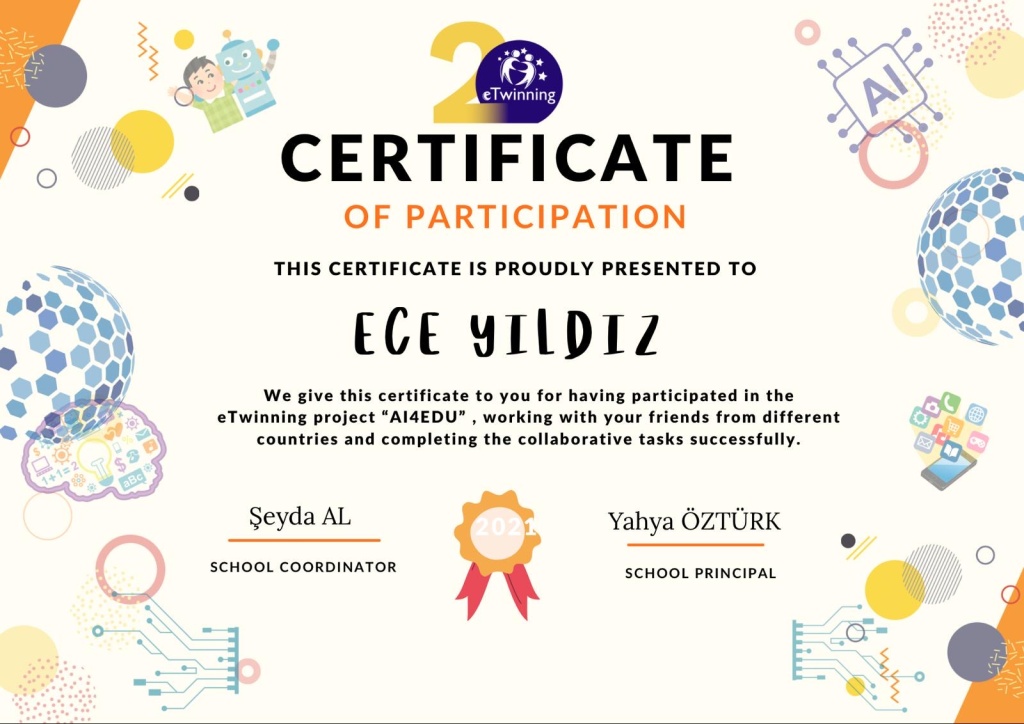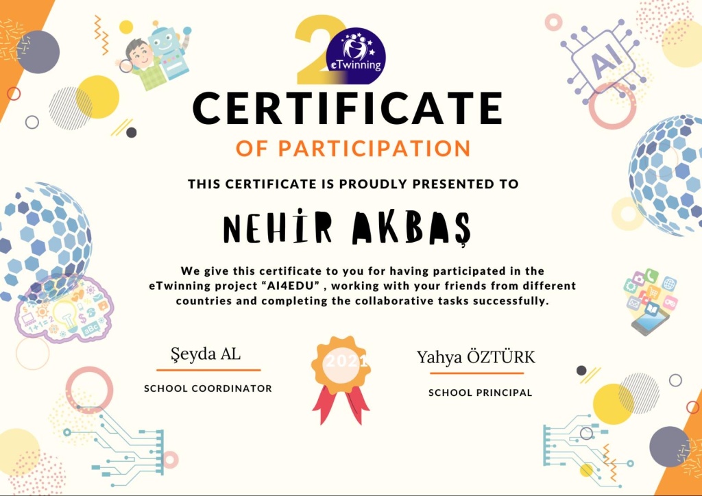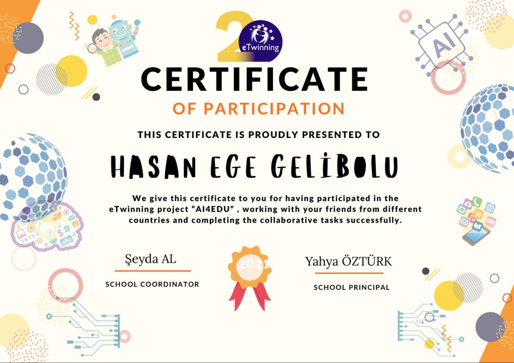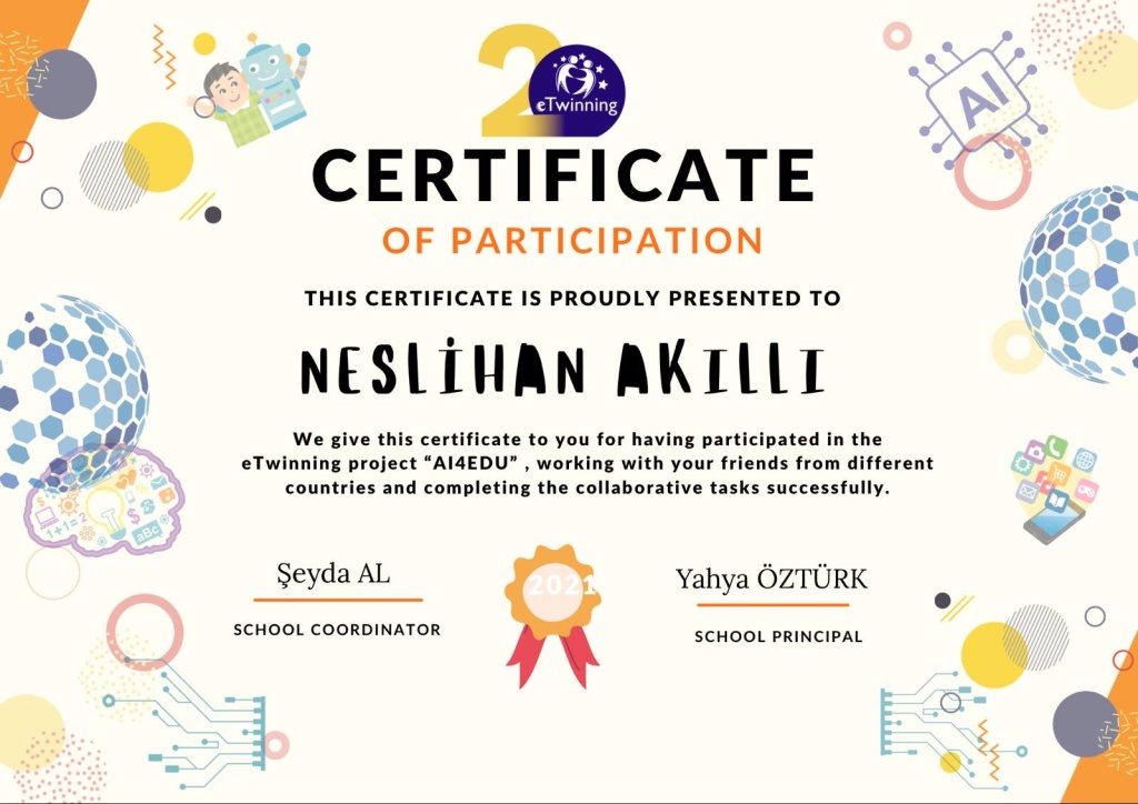 "Projemiz AI4EDU" ortaklarımız ve öğrencilerimizin işbirlikçi çalışmalarıyla final ürünümüz olan çizgi filmimiz "AI In The World"ü tamamladık. Böyle bir ekiple çalışmaktan dolayı çok memnun ve gururluyuz.